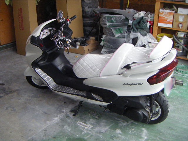 パーツを脱着してから単品で通常の黒い樹脂を研磨後、パールホワイト(3コート)に同色塗装しました!インナー部が同色になった事で一体感が出てありだと思います!センスの良いカスタムを楽しんで下さいね!