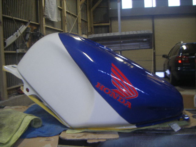 オークションで購入された中古のNSR250のタンクのリペアをさせていただきました