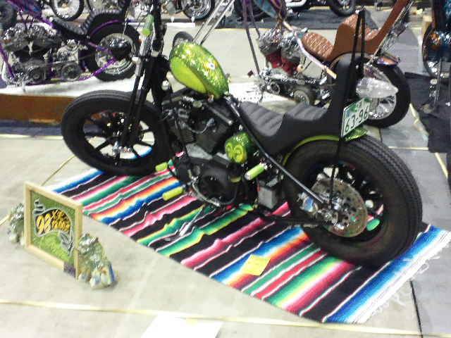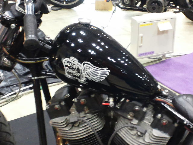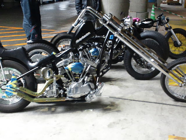 お昼に外に出たらハーレー、トラ、国産旧車などで観に来てた人がお帰りでその人達のオートバイも純正にこだわった車両からニュースクール、ラット、ロングホークチョッパー、ボバー、フリスコスタイル、とラッカーなどなどみなさんピンストライプ、フレーク、マッド、ファイヤーパターン、サイケなどなど素材そのものデザインがとても個性がでててカスタム好きにはたまらない感じでしたね☆
