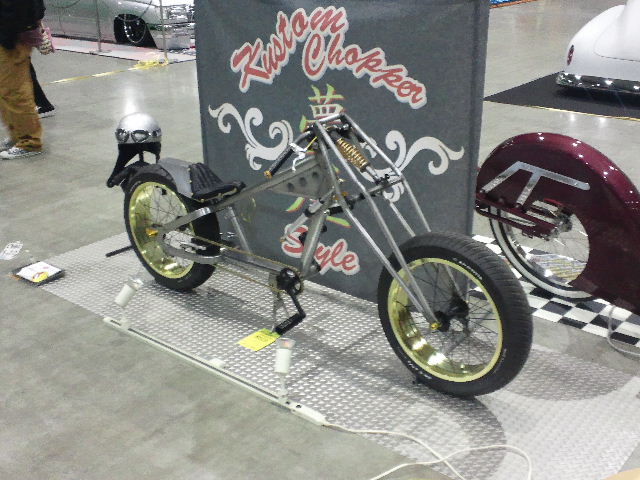 今年のチョッパーさんは渋い黒外装のスプリンガーチョッパー1台とボバー3台を出展