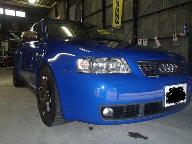 なかなか希少で低走行アウディS3を購入されて当店でホイールガンメタペイント 、キャリパーロッソレッドペイント、ボディーはクォーツガラスコーティングでイメージチェンジとボディー保護