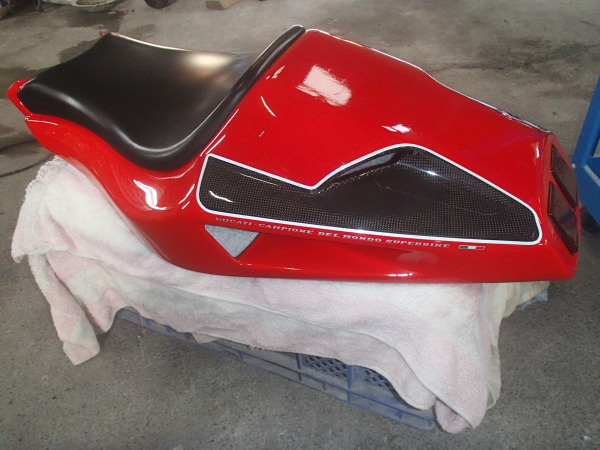 カーボンベースにロッソレッドでこれぞドカなレーシーなテールカウルでした