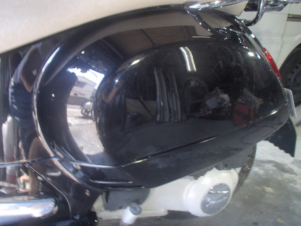 色が変わるとイメージが全然違いますね!純正はW1系を受け継ぐTHE王道 ですが塗り替える事でアニマルボートさんでいじってるみたいなボバーなストリート感がでていい感じです