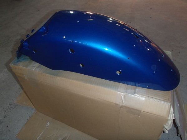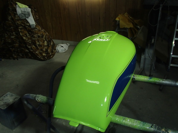 純正の黒外装を濃い青玉虫に塗り替えです!Z1の明るい青より濃いので渋い仕上がりとなりました、ご自身の好きなカラーに 塗り替える事により一層愛着が湧きますね