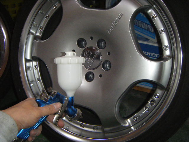 距離を走行しているホイールは洗浄後、脱脂、吹き付け